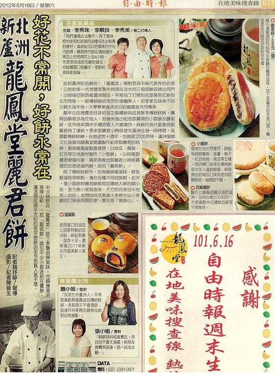 新北蘆洲 龍鳳堂麗君餅*美食吧檯* 自由時報週末生活版:http://week.ltn.com.tw/foodbar/DC2701.html